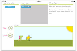A free iPad app featuring a dinosaur that can be programmed to complete a series of simple tasks including instructions to produce a desired outcome.