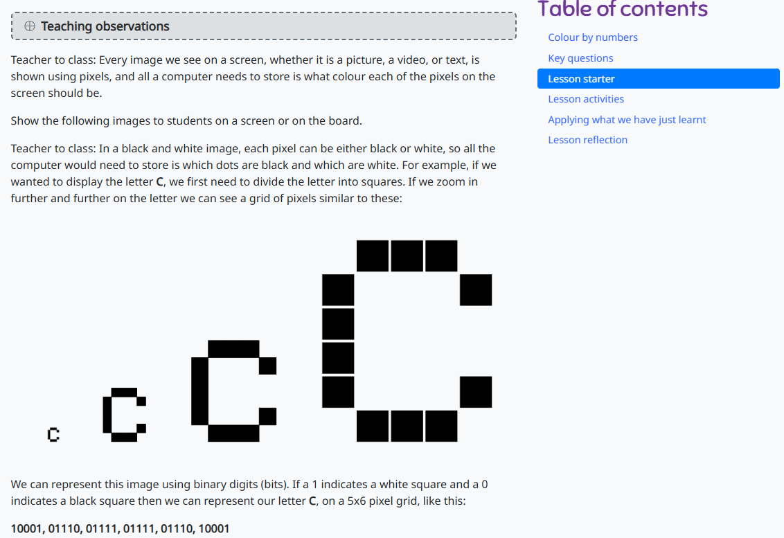 Use the Colour by Numbers offline activity to explore how a B&W image is made up of pixels, shown as black or white dots which are represented by either a 1 or 0. Using a 0 or 1 to represent a white or black square students create an image on a grid. They supply the coded message for someone else to recreate. Support your teaching and learning with video clips and other related resources.