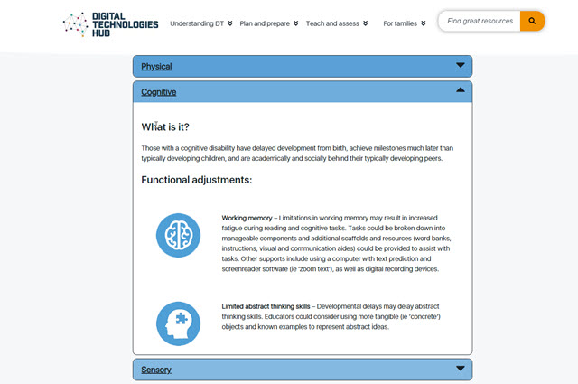 The Nationally Consistent Collection of Data on School Students with Disability (NCCD) identifies four broad categories of disability: physical, cognitive, sensory, and social/emotional. A student may need adjustments in multiple categories.