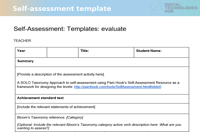 This template can be used for Digital Technologies related tasks that enable students to self-assess.