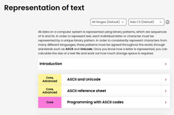 This comprehensive online guide, provides a background to ways text is represented in computer systems. This topic has information about ASCII and Unicode.