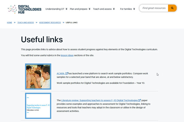 This page provides links to advice about how to assess student progress against key elements of the Digital Technologies curriculum.