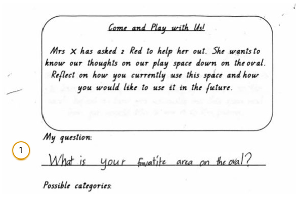 An ACARA worksample showing how Years 1–2 students represent and process data in different ways, demonstrating evidence towards achievement standards related to data representation and collaborating and managing as they ask a question and use a digital tool to collect data.
