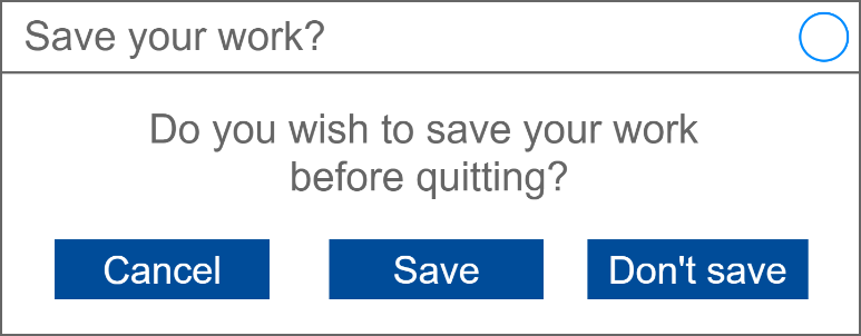 As a class, discuss if you see any problem with the above UI design for this pop-up. For comparison, bring up a similar pop-up when exiting Microsoft Word, Notepad or another application like Audacity.