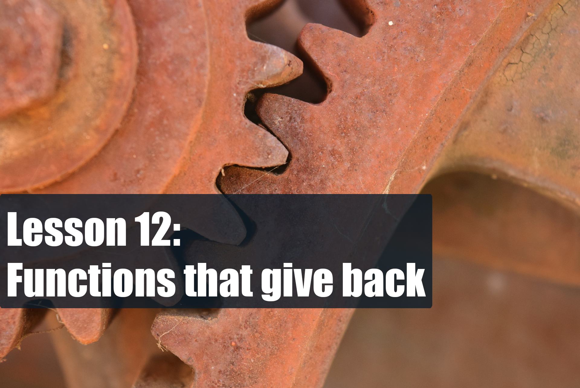 - Create functions with return values. They give back an answer, rather than just perform an action.