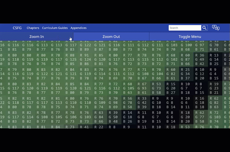 Use this animated GIF sequence of zooming in on an image of a kangaroo to reveal RGB colour coding.