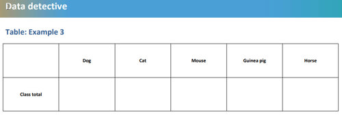 - 'If someone has more than one cat, should we count that as one or two in the cat category?' Divide class into small groups (whose size will be dependent on context) and ask students to collect the information from the members in their group using an agreed method. The collection method may differ according to age of students. Provide worksheets / tables as required, for example, see the resources section.