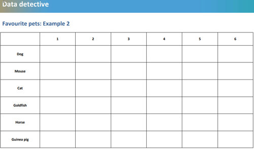 - Refer to the earlier pet investigation task and the list that was created. Remind students about the importance of deciding on the best method for collecting the data.