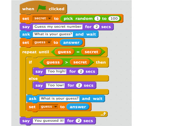 - Students now modify their Scratch program using their new structured English algorithm to play this latter version. This is not a trivial exercise as there are pitfalls that will illustrate well the necessity for desk checking.