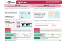 The first poster includes approaches used to teach students about algorithms from Years 1-10.