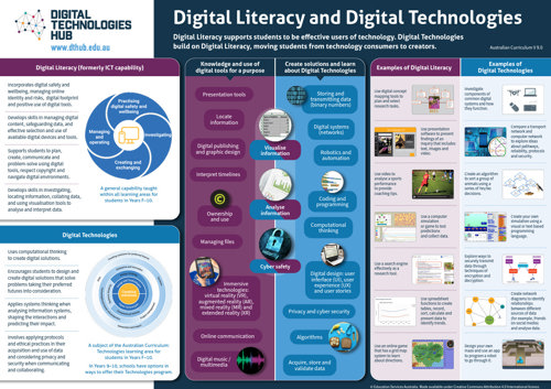 A topical question and key consideration for schools is what’s the relationship between Digital Literacy (formally ICT Capability) and Digital Technologies and how they differ. The following resources can help clarify this.