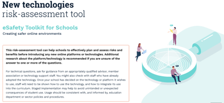 The eSafety Commissioner has designed a Toolkit for Schools designed to support schools to create safer online environments.